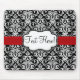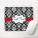 Chic Black/White Damask Red Ribbon Mouse Mat