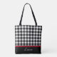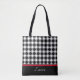 Personalised black and white diamond geometric shape & black and red bands Tote Bag. Beautiful and modern Tote Bags!