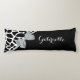 Chic Black White Giraffe Print Silver Bow and Name Body Cushion