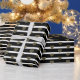 Chic black white gold hearts stripes modern wrapping paper