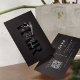 Capture your clients' attention with these chic white on mute-black scissors-adorned business cards. The best presentation is a minimalist, customised design with modern typography and a calligraphy script.