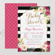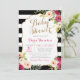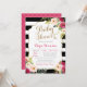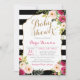 Chic Black & White Stripe Pink Floral Baby Shower Invitation
