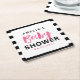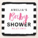 Chic Black & White Stripes Pink Baby Shower Square Paper Coaster