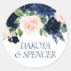 Chic Blooms | Navy Blue and Blush Pink Bouquet Classic Round Sticker