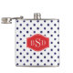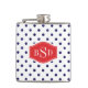 Chic blue and white polka dots patterns monogram hip flask