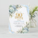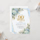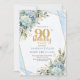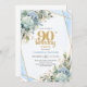 Chic Blue Flowers Gold 90th Birthday Party Invite
