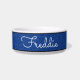 This simple yet chic design features a faux navy blue glitter background with a simple black border. Customise the popular text with the name of your choice. Your kitty is sure to be pleased.