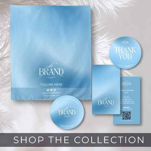 This elegant arctic ice blue logo table runner allows you to add your business name and logo easily. All text can be personalized to fit your brand and colors. This custom blue table sign for events includes space for you to add your own website link and social media handles. Features a serene blue gradient background with a blue color block that features your business, front and center! Prepare for your next vendor event, trade show, or other professional business events with our custom business logo banner!