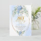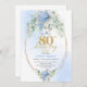 Chic Blue Hydrangeas Gold Floral 80th Birthday Invitation