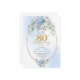 Celebrate a remarkable milestone with this 80th birthday invitation featuring one of today’s most trendy and elegant color combinations: blue and gold. Designed with soft watercolor blue hydrangeas, fresh eucalyptus greenery, and refined gold floral accents, this invitation brings a sense of calm sophistication and joyful celebration to an unforgettable occasion.