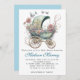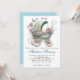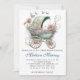 Chic Blue & Pink Floral Buggy Stroller Baby Shower Invitation