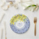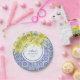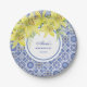 Chic Blue Portuguese Azulejo Yellow Lily Birthday Paper Plate