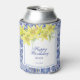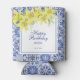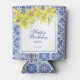 Chic Blue Portuguese Azulejo Yellow Lily Can Cooler
