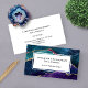Simply elegant professional business card featuring your name, title or profession and business tagline or slogan with colourful shades of blue, purple and aqua agate with metallic gold foil veins and sparkly stars. A coordinating white background is on the back of the card and includes your contact details.