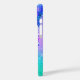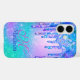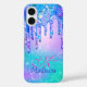 Chic blue purple ombre glitter drips monogram Iphone case. This design features holographic faux glitter drips in iridescent shades of blue, turquoise and purple. The printed glitter gives a playful, dazzling effect that adds personality to the iPhone, capturing the fun of glitter in a sleek, girly style.. It makes the perfect gift for a sweet 16 birthday, wedding, bridal shower, anniversaries, baby showers or bachelorette parties, valentines day, Christmas or as a gift in general.