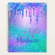 Chic blue purple ombre dripping glitter monogram Notebook. Cool for school, work or as a journal or diary! To make it extra special, it is also monogrammed and personalised with name or initials or any text you like, click the "customise further" link and use the design tool to modify the design if you like.