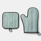 Chic Blue Rustic Wood Oven Mitt & Pot Holder Set