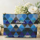Chic blue turquoise grey geometric accessory pouch