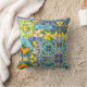 Chic blue turquoise sicilian citrus floral tiles cushion