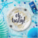 Chic Blue & White Floral Oh Baby Baby Shower Paper Plate