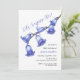 Elegant watercolor bluebell flower branch in a white backdrop birthday invitation.