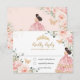 Chic Blush Floral Princess Quinceañera Gold Crown RSVP Card