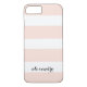 This stylish phone case features blush pink and white stripes, and your name in modern black calligraphy.