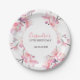 Modern watercolor blush pink cherry blossom birthday paper plate. Matching Items in our shop for a complete party theme.