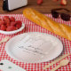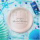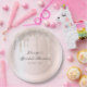 These personalised glitter and glam paper plates will add sparkle to your bridal shower. This chic design template features a top border of blush pink dripping glitter on a shiny background. Customise with a name and date in modern grey script. Designed by Susan Coffey.