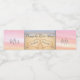Chic Blush Pink Wedding 2 Hearts in Sand Family Monogram, Brides and Groom's Names in Hearts on the Beach water bottle lables