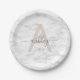 Chic Blush Pink White Marble Script Name Monogram Paper Plate