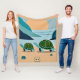 This monogram blanket design captures a charming beach scene with two sea turtles making their way across the sand towards at the ocean. The artwork is done in tones of green, beige, and cream, giving it a calm and natural feel. The turtles vary in size, symbolising different stages of life, and are illustrated with simple, clean lines that enhance the peaceful beach atmosphere. The top of the bottom features a customisable monogram, currently showing “MW,” which can be personalised with any initials. This blanket is perfect for those who love marine life, especially sea turtles, and would make a thoughtful gift or a cosy addition to a coastal-themed space.