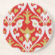 Chic bold red and gold tribal ikat print coaster