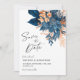 Announce your big day with this Chic Botanical Floral Modern Elegant Wedding Save the Date featuring stunning watercolor floral design in indigo rust hues. The botanical elements add a touch of nature to the overall design, creating an invitation that's perfect for the bride-to-be who appreciates rustic elegance. Crafted with care to ensure a memorable first impression for your guests, the design showcases contemporary aesthetic while embracing the timeless charm of a garden wedding. Make your wedding announcement unique and unforgettable with this sophisticated and contemporary invitation, boasting the perfect blend of indigo rust and botanical flair.