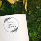 Chic Botanical Leaves Script Ex Libris Custom Name Self-inking Stamp. Featuring hand-drawn leaves placed on top of a thin circular border, "ex libris" appears in elegant script and your custom name in clean serif.