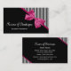 Chic pink and black boutique business cards with modern black and white stripes and a girly dark pink ribbon tied into a stylish bow. These quality, yet affordable, business cards are sure to draw new clients and customers to your professional beauty boutique or salon. Flat printed image, not actual bow.