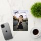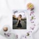 Elevate your Class of 2026 announcement with this trendy real rose gold foil design, featuring a hand-drawn ribbon that loops into a stylish coquette bow. The foil script flows naturally to spell "Graduate," creating a modern, organic frame around your senior portrait. This feminine aesthetic offers full customization for your class year, name, and school on the front, while the back provides space for a second full-sized photo with a matching seamless bow pattern background. All colors on the back are editable to match your aesthetic or photo colors. Choose your own foil color for the front. © Kimbellished, LLC