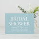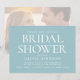 Elegant bridal shower invitations featuring classic typography, giving them a timeless feel. The reverse side showcases a photo of the bride-to-be, subtly veiled with a semi-transparent white overlay. Personalise the template with the bride's name, date, venue address, RSVP details, and registry information. Additionally, you can change the background colour using the design editor tool. Printed colours: muted teal blue-green, white and dark grey. Available as a printed invitation or a digital download.