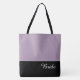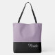 This lovely fashion forward tote bag shows the word "Bride" in white text colour over black with the upper tote bag in custom Sugared Plum. Has plenty of room for personalised text. Graphics and text are on both sides of this tote bag. Black handle. Customise further or buy as shown.