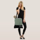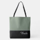 This lovely fashion forward tote bag shows the word "Bride" in white text colour over black with the upper tote bag in custom Willow Green. Has plenty of room for personalised text. Graphics and text are on both sides of this tote bag. Black handle. Customise further or buy as shown.