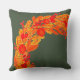 Chic and elegant holiday throw pillow. Bright winter illustration with decorative wreath of fir branches, leaves, berries and oranges on green background.