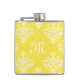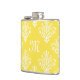 Chic Bright Yellow Damask and Fashionable Monogram Hip Flask