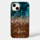 Chic Bronze Turquoise Glitter Marble monogram Case-Mate iPhone Case
