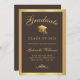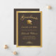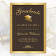 Send your family and friends an chic graduation announcement featuring a classic brown background with fuax gold calligraphy and gold grad cap bordered by a gold frame. Personalise with your graduation details. Designed by Susan Coffey.