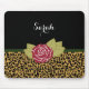 Chic Brown Gold Leopard Print Red Rose With Name Mouse Mat