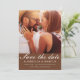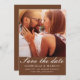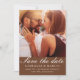 Chic brown and white one photo wedding save the date announcement. Please view this elegant wedding collection for beautiful coordinating wedding invitations, and additional modern colour options.