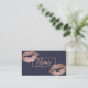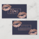 An elegant modern, stylish and simple brows business card with elegant script hand lettering style typography with faux rose gold frame and lips on a navy blue customisable background. A simple and professional design