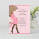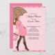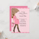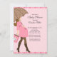 Start you sweet baby girl baby shower off right with our modern brunette mum to be holding a brown and pink polka dots umbrella set on a pink polka dots background. Visit our shop for a large selection of baby shower invitations for a baby girl baby shower.