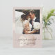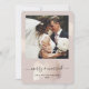 These elegant Christmas cards for the newlyweds feature a faux rose gold, abstract brush stroke on a neutral, rosy pink background colour. Add your favourite wedding photo. Trendy black handwritten script says "Merry & Married" and there is room for your personal holiday message on the back of these modern cards.