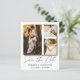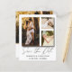 Elegant and simple save our date announcement. This template features space for 3 of your favourite couples photos in white with cool hand written calligraphy in gold. Easy to edit with your own unique details.
